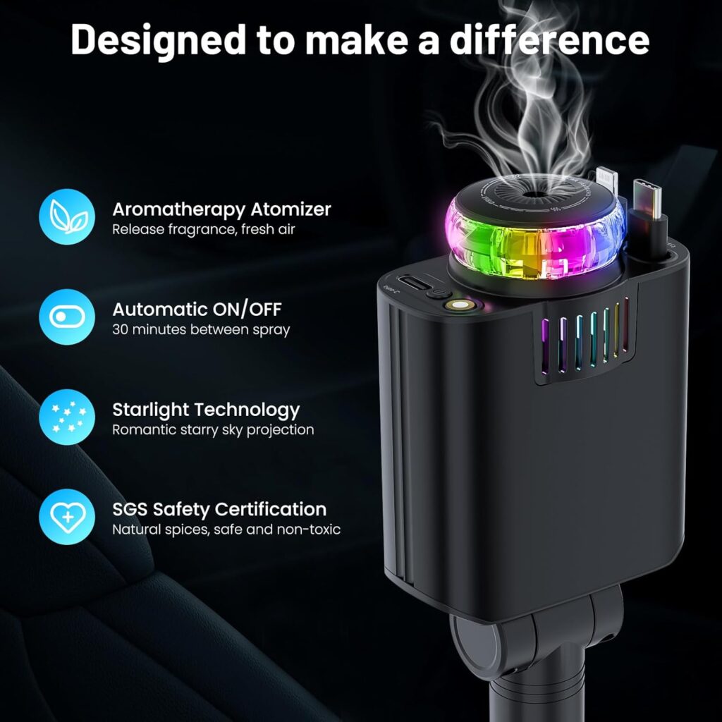 Imagine stepping into your car and being greeted by a mesmerizing starry night sky on your ceiling, the soothing scent of your favorite essential oil filling the air, and all your devices charging faster than ever before.