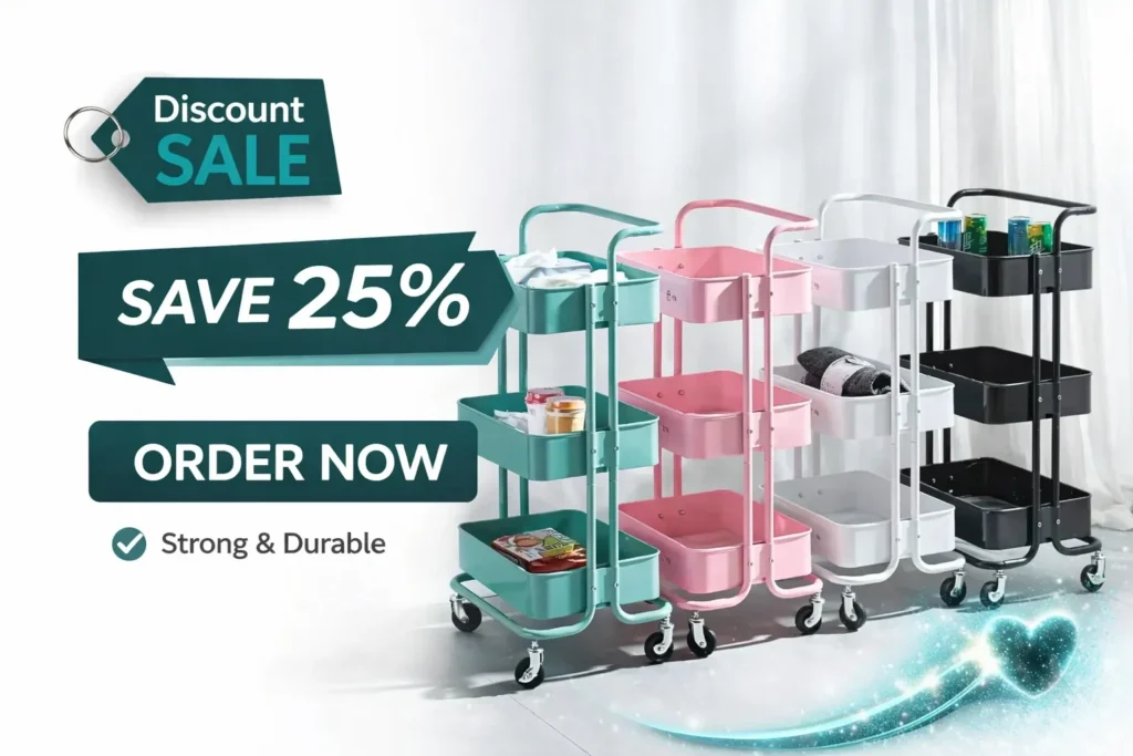 No more lifting heavy items or struggling to rearrange things. With smooth wheels, you can move this cart from your kitchen to your room, from your shop floor to your store area, without stress. It saves time and energy every single day.