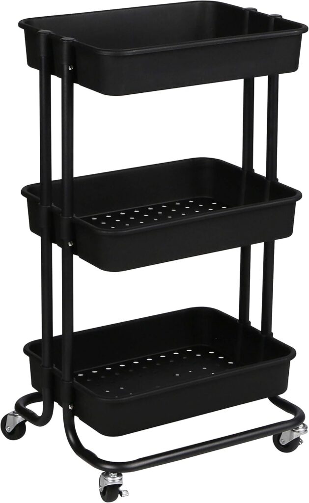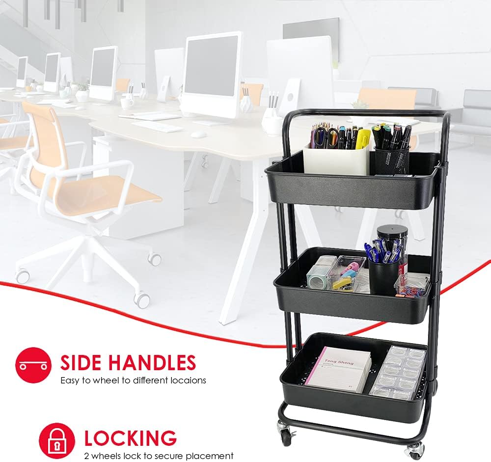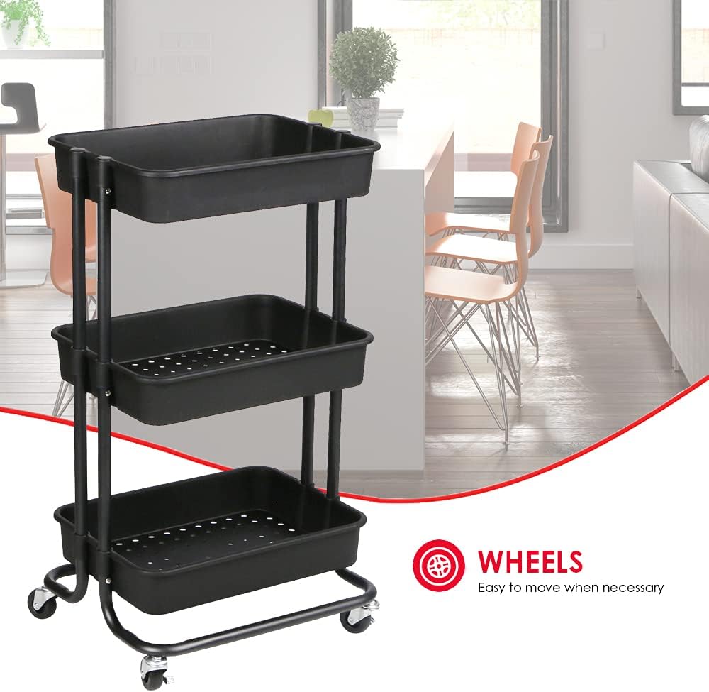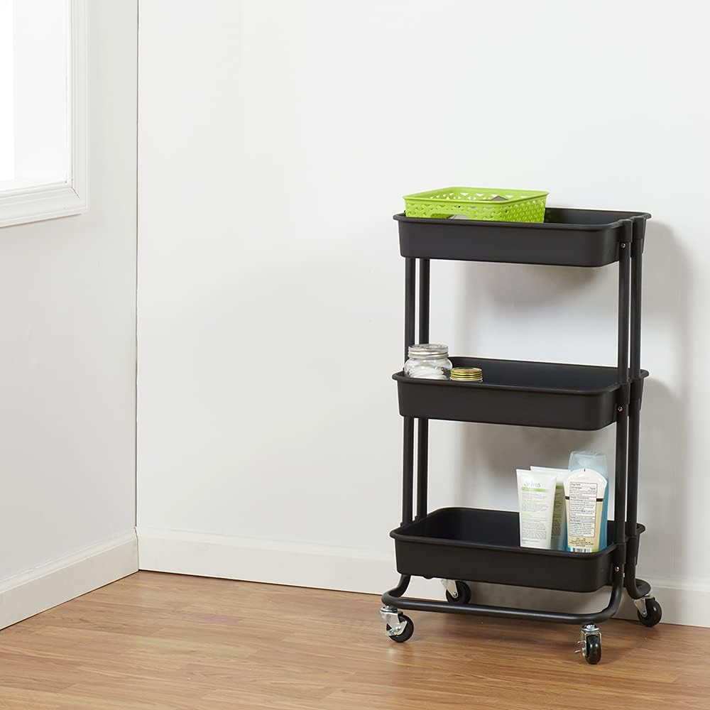 Each tier has raised edges to prevent items from sliding off, even when moving. Roll it confidently without worrying about things falling and breaking.