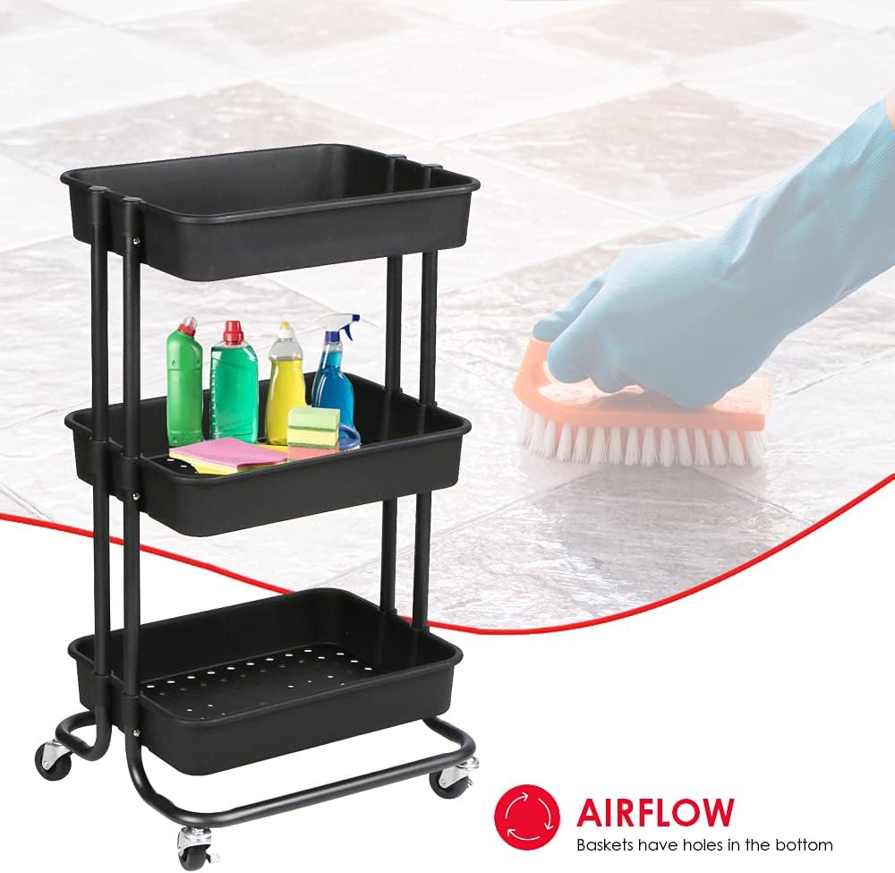 "Our bathroom is small and we had no good place to keep things. This cart solved the problem immediately. The holes let water drain if anything is wet, which is very useful. My husband was so impressed he wants to get one for our balcony. I recommend this to anyone who needs more space."