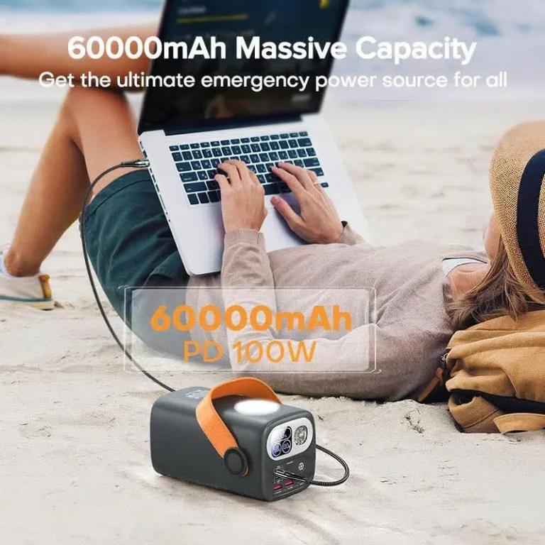 Boasting an incredible 60000mAh capacity, this power bank can charge your phone more than 10 times! It’s the perfect companion whether you’re working, traveling, camping, or simply on the go. Say goodbye to low-battery anxiety and keep all your essential devices – phones, tablets, earbuds, cameras, laptops and more – powered up for days.