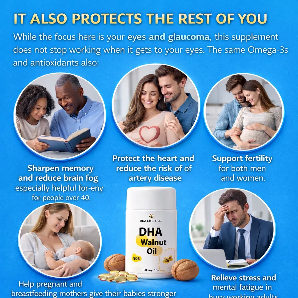 It fights the inflammation destroying your eye cells. Glaucoma is not just about pressure, it is also about chronic inflammation attacking the optic nerve from inside. The antioxidants and anti-inflammatory compounds in walnut oil and flaxseed oil directly target this inflammation and slow it down.